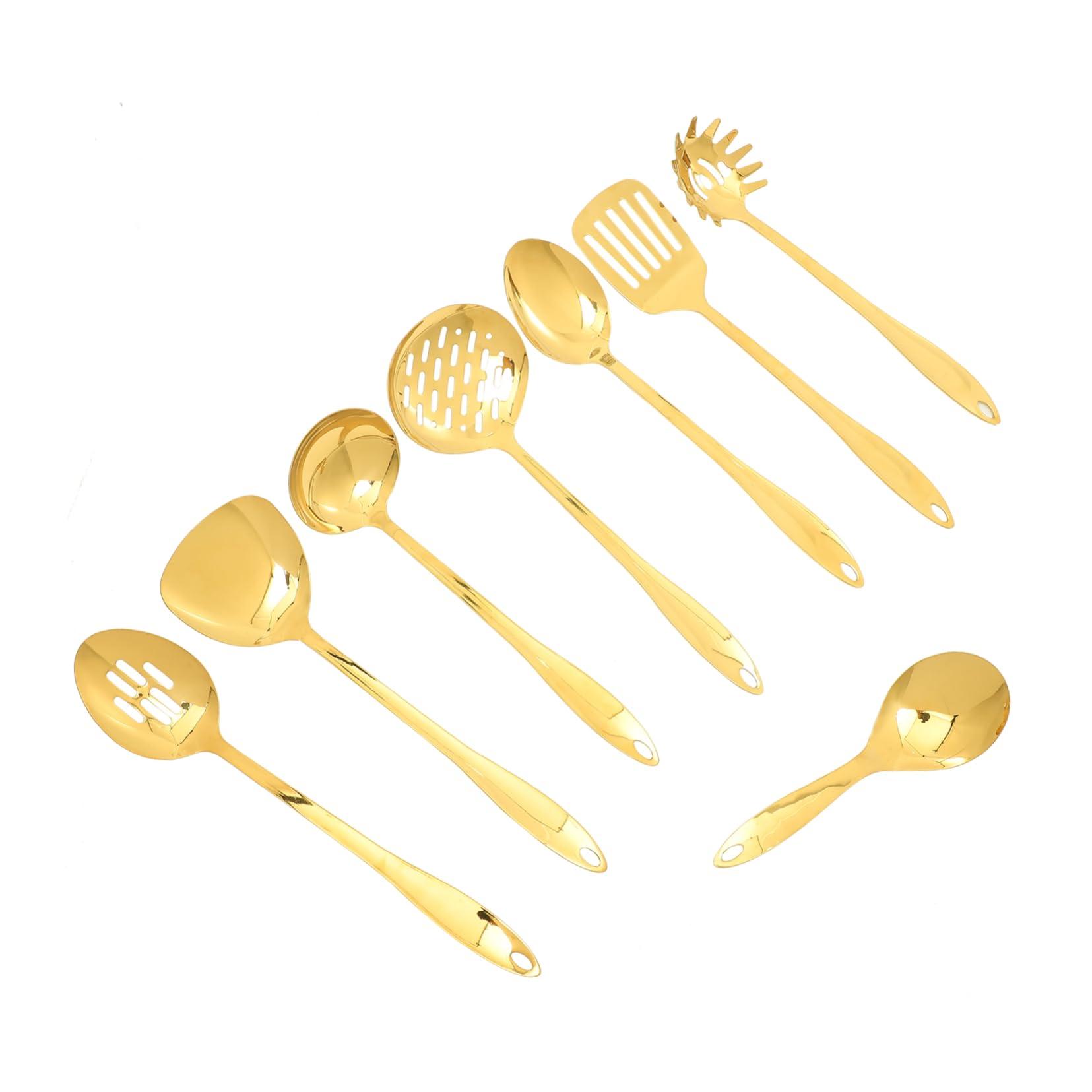 - Stainless cooking utensil--featuring with a utility hanging hole at the end of the handle for convenient storage, smooth edges and comfortable to use,spatula and spoon ladle