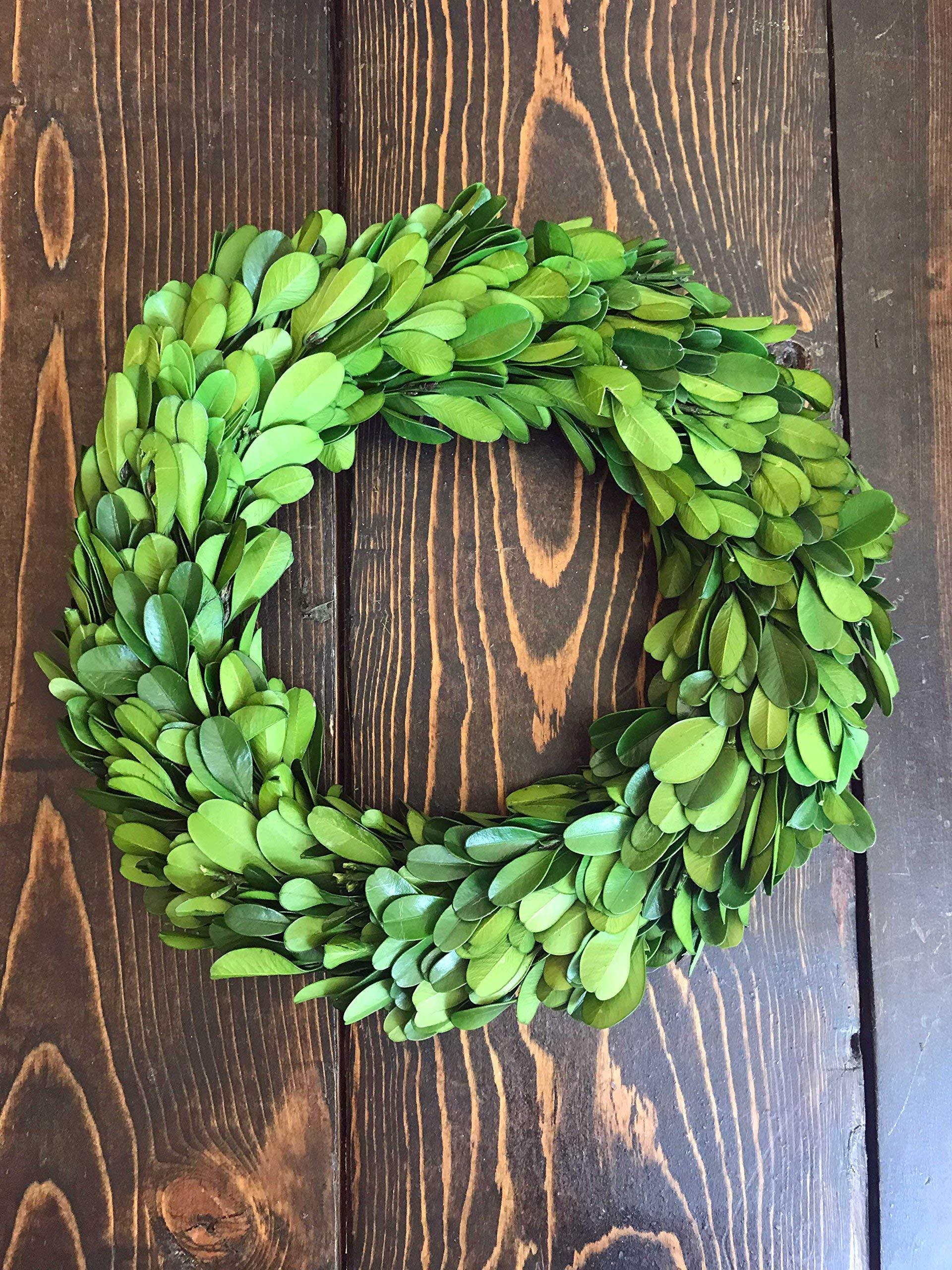 PLEASE NOTE: These boxwood wreaths are made from preserved boxwood cuttings and are NOT INTENDED FOR OUTDOOR USE or exposure to extreme wet or dry conditions.