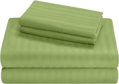 100% Egyptian Cotton RV Sheets Set 4 PC - 400 Thread Count - Soft and Smooth Bed Sheets for Campers, RV's & Travel Trailers Easy Fit Mattress up to 10 Inch Deep Pockets - Sage Stripe - (72X80) CAMPER King Size
