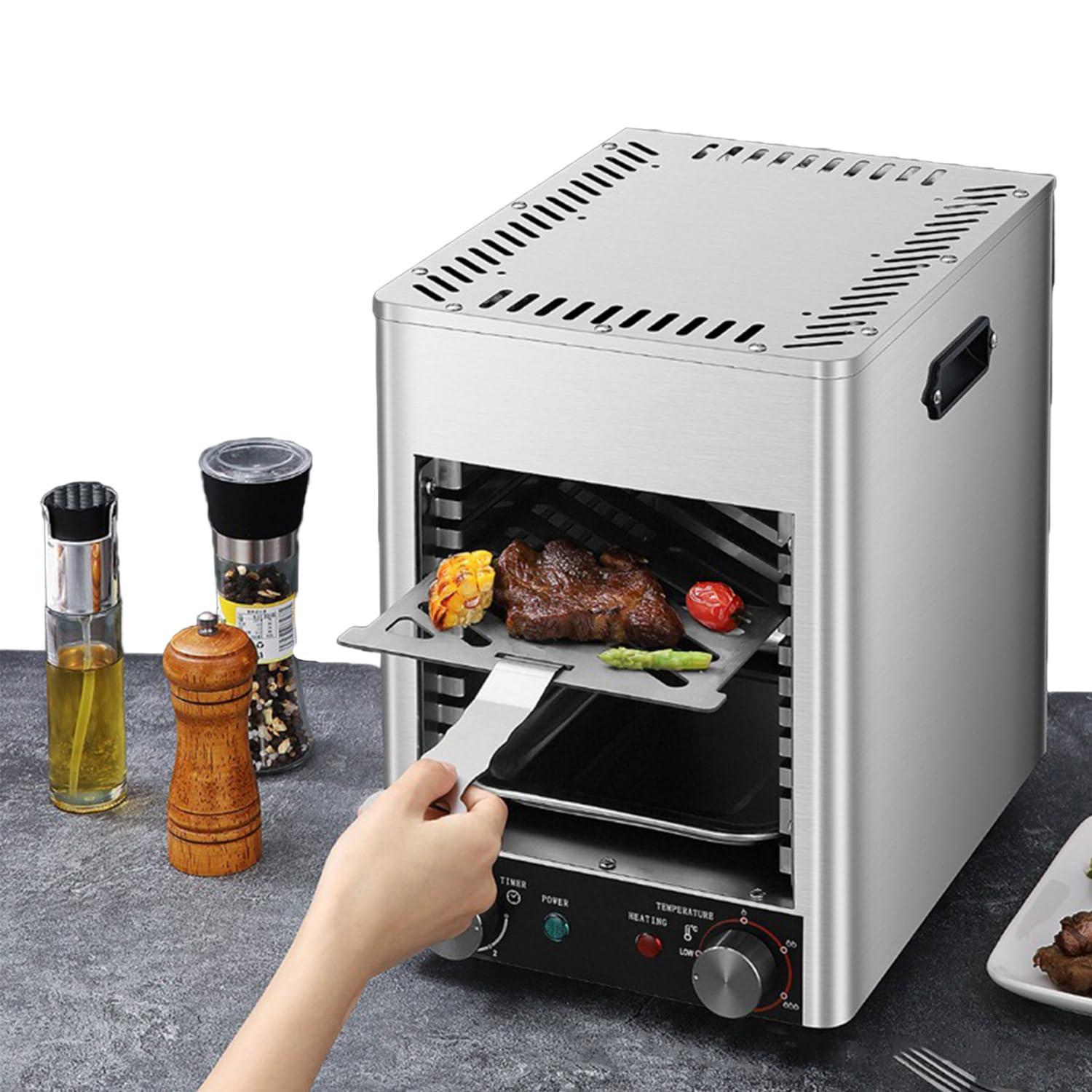 - LARGE CAPACITY The tabletop grill has 10 slots of different heights. Different positions can be selected for grilling according to different ingredients. 1-3 layers can be used to grill ribeye, T-bone, steak, 4-6 can be used to grill chicken, fish, and desserts, and 7-10 layers can be used to grill vegetables and fruits. (Counting from top to bottom)