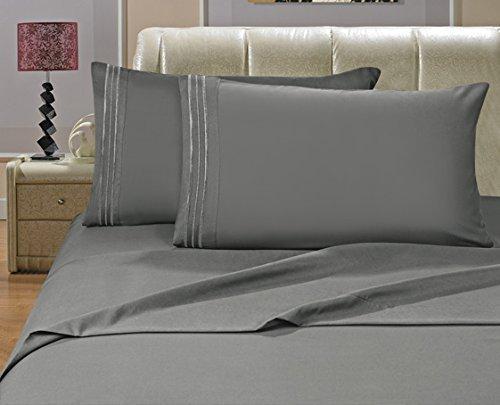 1800 Thread Count 4pc Bed Sheet Set Egyptian Quality Deep Pocket , California King, Gray