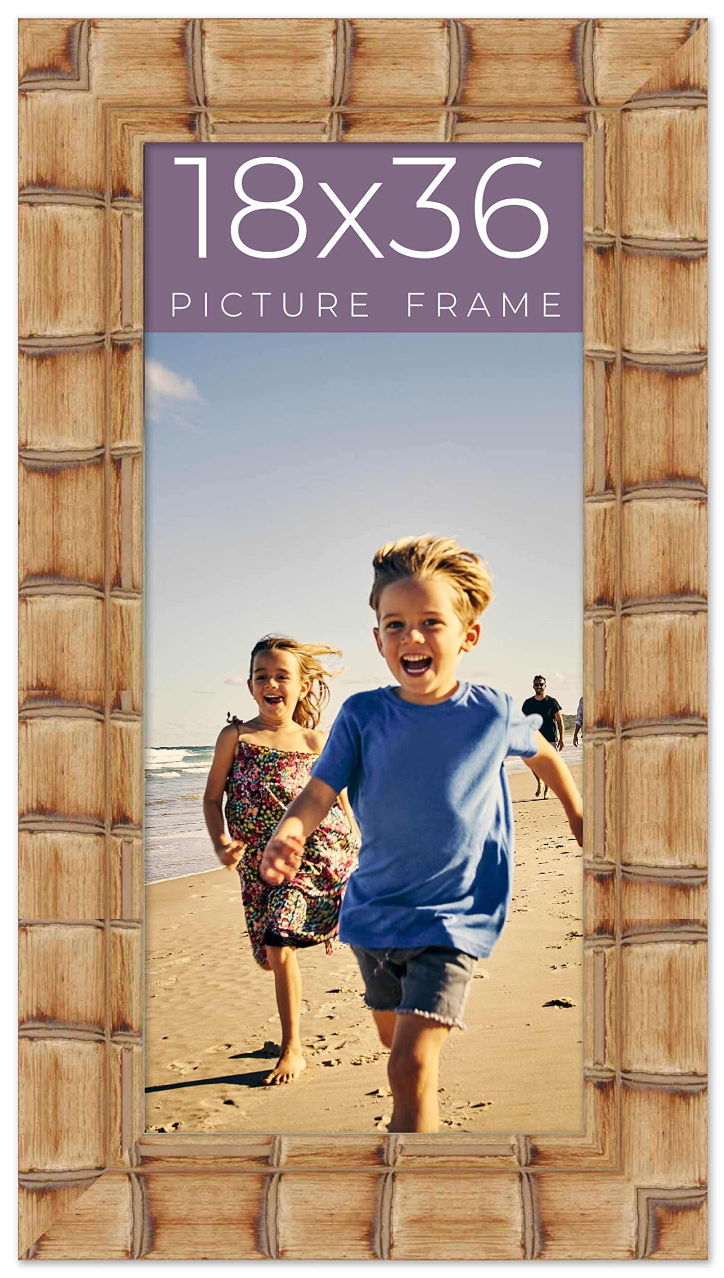 - Handcrafted Brown Wood Picture Frame for Family Photos, Art Prints, Canvases, Documents, Kids Drawings, Diplomas, Certificates, and More Measuring 18x36 Inches