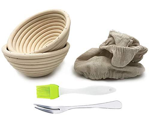 • WHAT YOU GET?: 2 * 5" round proofing basket + 2 * liner cover + 1 * fork + 1 * brush.100% SATISFACTION GUARANTEED Were confident that youll love your new bread proofing basket. If it doesnt meet your expectations, you can always count on our money-back guarantee.