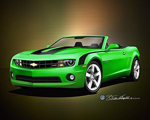 Automotive Art Prints 2010 - 2011 CAMARO RS CONVERTIBLE - SYNERGY GREEN - ART PRINT POSTER BY ARTIST DANNY WHITFIELD SIZE 20 X 24