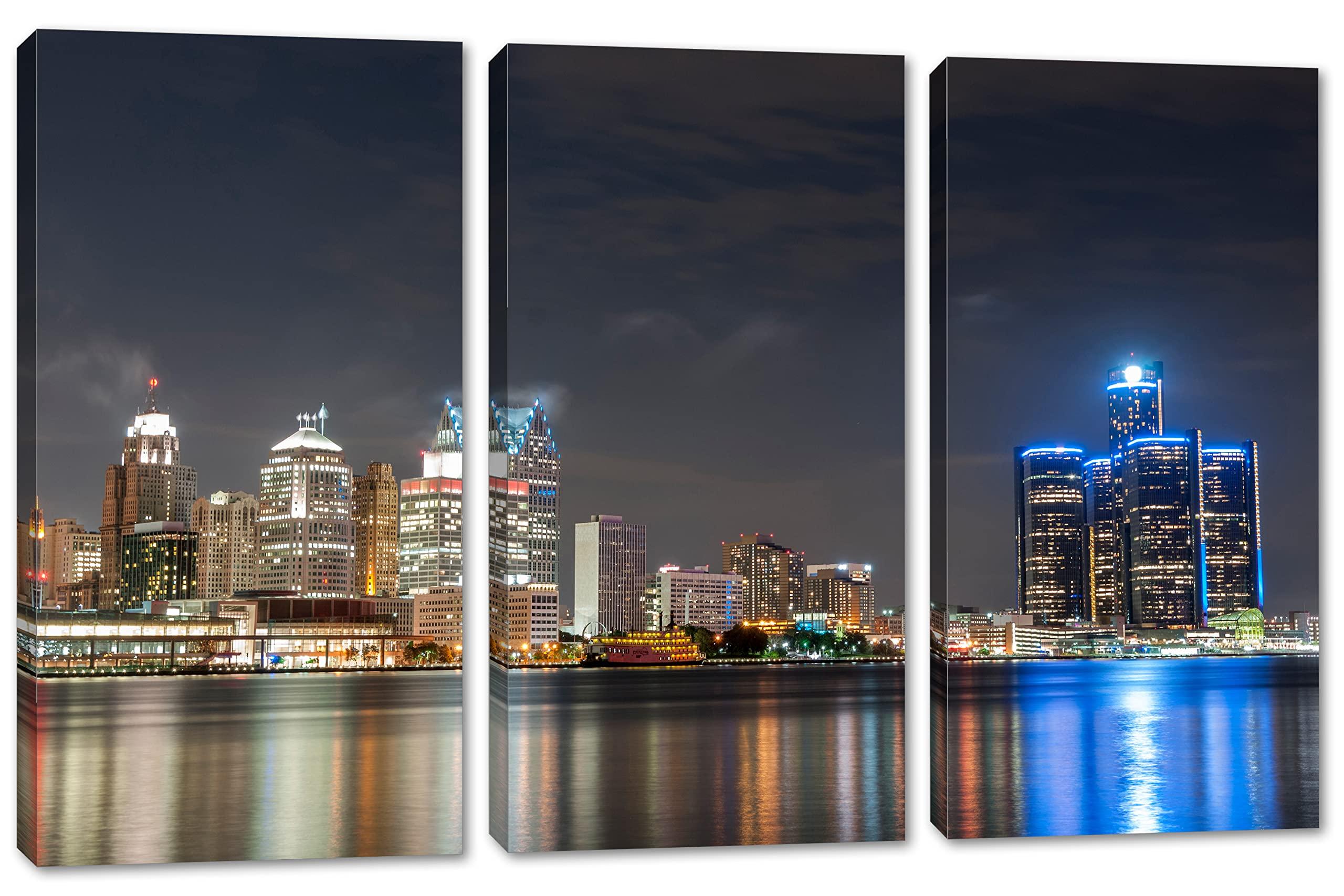 3 Panel Split (Triptych) Downtown Detroit, Michigan Skyline Canvas Print. This giclee print is great for interior home or office decor. Hand stretched on 1.5" deep wooden stretcher bars. Combined size (inches): 24x16 - (8" x 16" x 1.5" each panel)