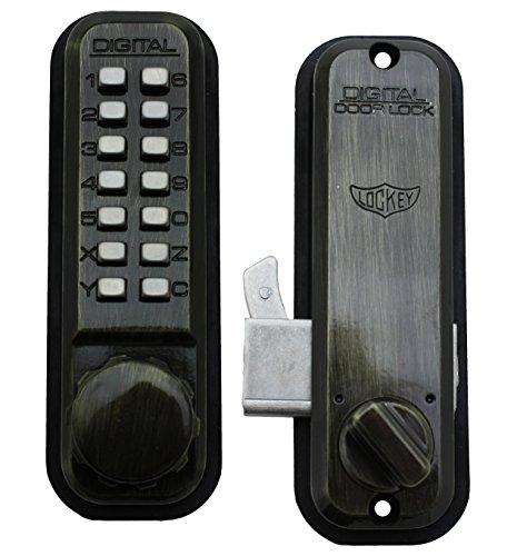 Digital Door Lock, 2500 Mechanical, Keyless Hook Bolt style lock for gates and sliding glass doors in Antique Brass