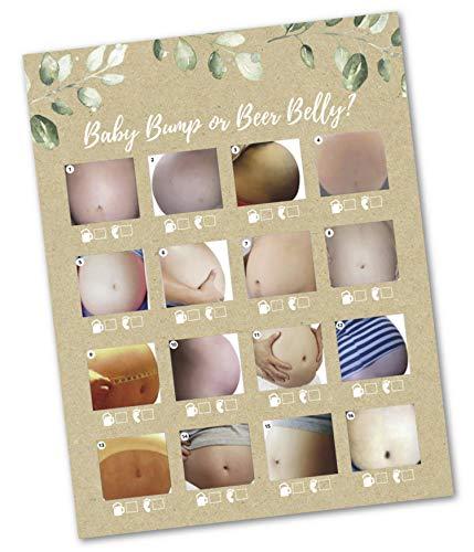 - COMPLETE KITS- 30 game cards and 1 answer key included. Simply have your guests put a mark next to the beer symbol if they think the picture is of a beer belly or mark the foot symbol if they think its a baby bump. The guest with the most correct answers can win a prize.