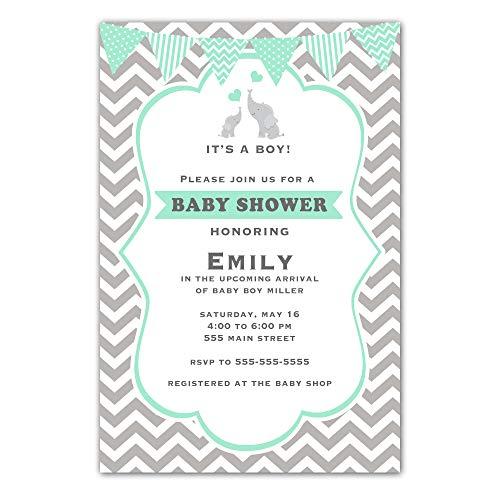 30 Invitations Elephant Mint Baby Shower Personalized + 30 White Envelopes