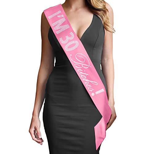 - STYLISH 30TH BIRTHDAY SASH! The birthday girl will stand out from the crowd in this rhinestone Im 30 Bitches! birthday sash. The sash features real rhinestones on a stunning satin sash.