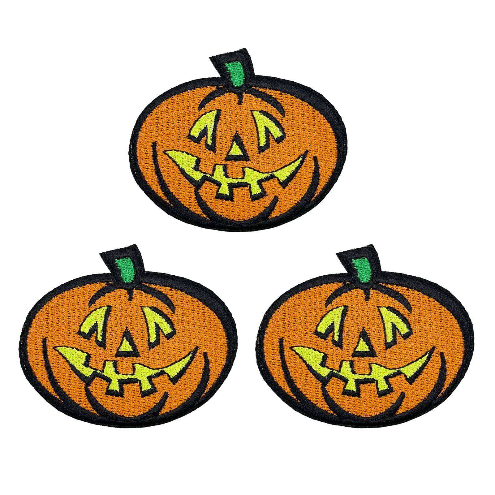 Enhance your Halloween wardrobe with our Pumpkin Face iron-on embroidered patch! Crafted from high-quality threads and twill, this set of three patches features a grinning pumpkin design. Whether youre dressing up for a spooky party or just adding flair to your everyday clothes, these patches are a must-have. Sew them on for lasting results, or use the iron-on backing for quick application. Get creative and turn your outfit into a Halloween masterpiece!