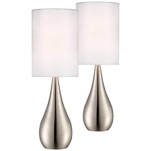 - Set of 2 lamps. Each is 21" high overall. Drum shades are 10" high x 7" wide. Weigh 4.1 lbs.