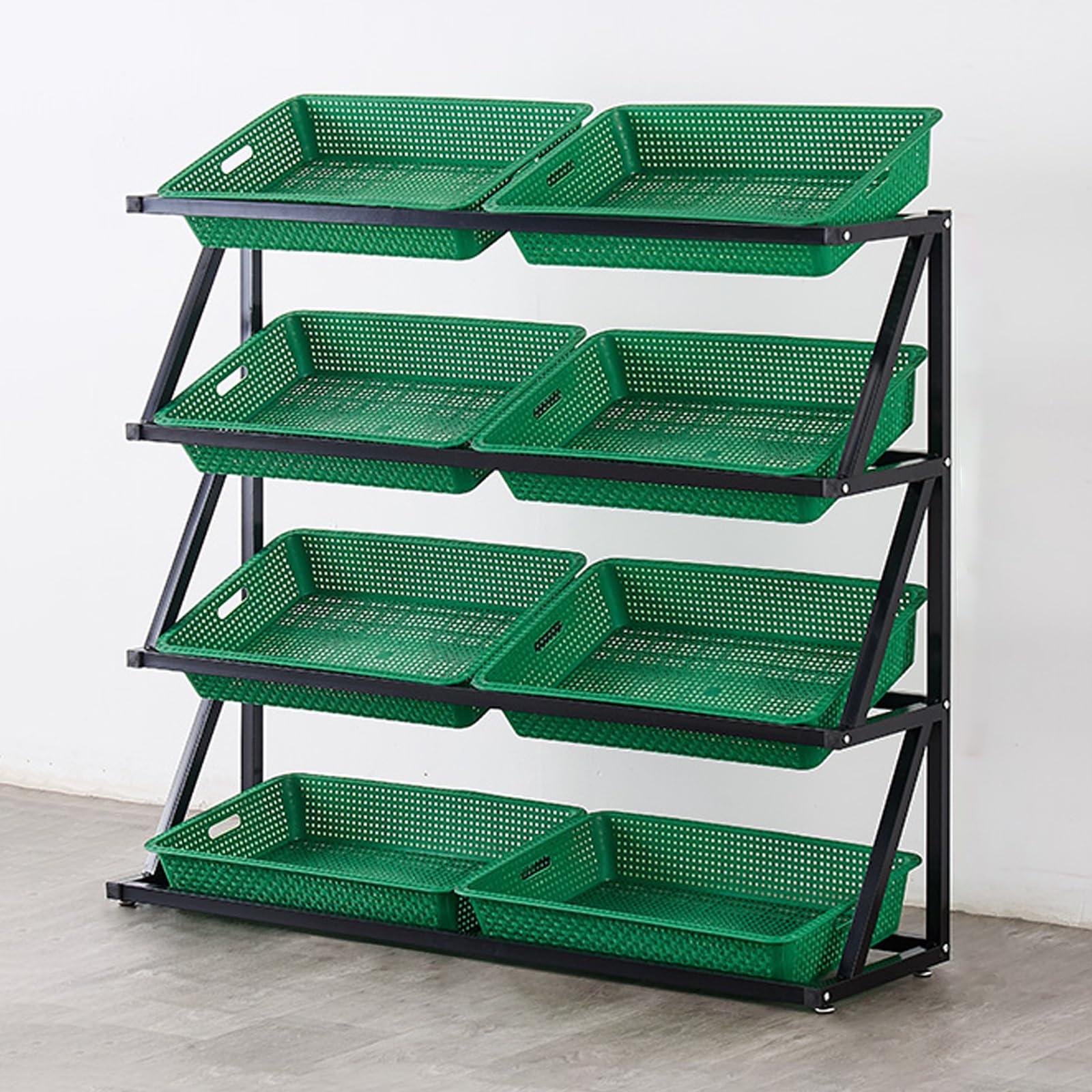 - Steel Frame Snack Shelf Our supermarket shelf display rack is made of heavy duty steel, sturdy and wear-resistant, not easy to deform or crack. The surface paint is waterproof and rustproof. Each basket loads 20KG/44LBS, stable and not easy to wobby.