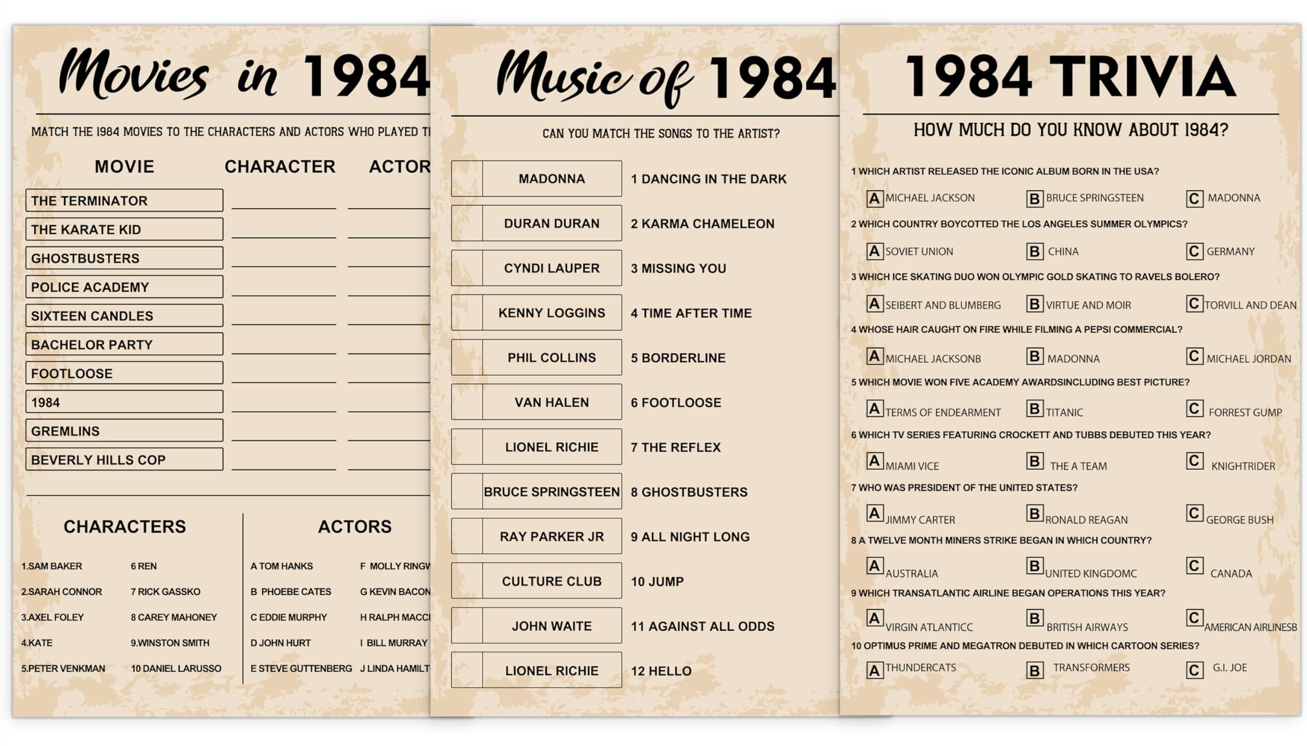 • Whats included in the 40 Birthday Games Bundle: respectively , [Music of 1984], [Movies in 1984] and [1984 Trivia]