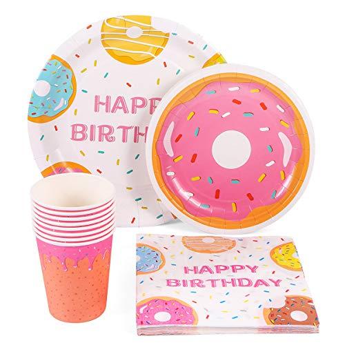 - High quality - Disposable items.This Donut party pack set is made from solid, durable paper material. Great for desserts, party food and beverages.The napkin is soft and absorbent.