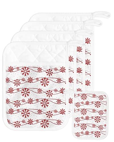 - Pot Holder Set of 5: These are just what you've been looking for and are big enough to fit your husband's big hands too. Our hot pads for kitchen measure 9 x 7 inch, pot holders reach quite a bit farther on your arm than other types, can provide extra burn protection and keep your hands safe from the heat. Hot pad have a small hanging loop on the side, can be hung up, or put in a drawer, making storage more convenient. Highly recommend these if you want oven mitts that last for an amazing price!