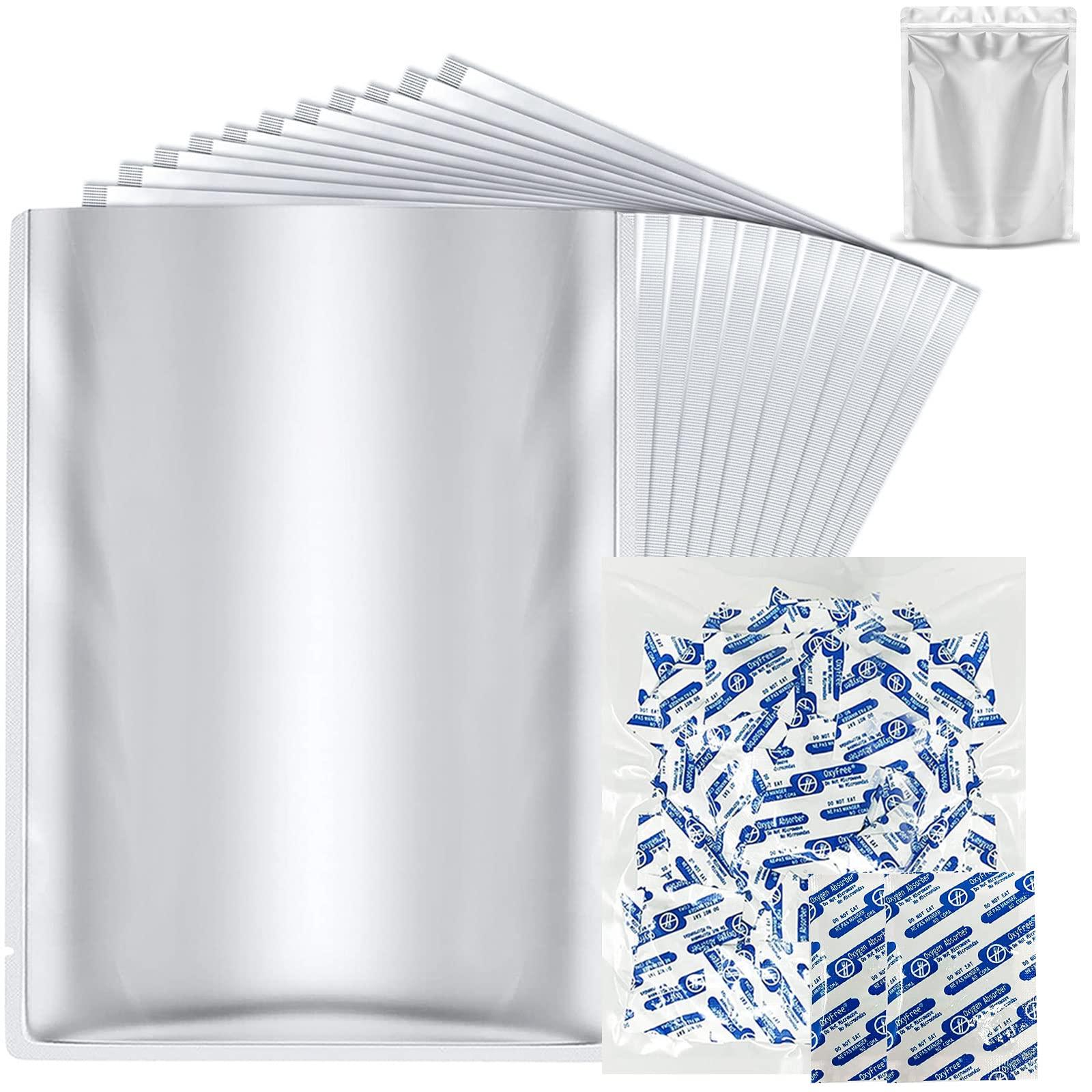 - WHAT YOU WILL GET - 50 Packs mylar bags(10"x14") and 60 packets oxygen absorbers
