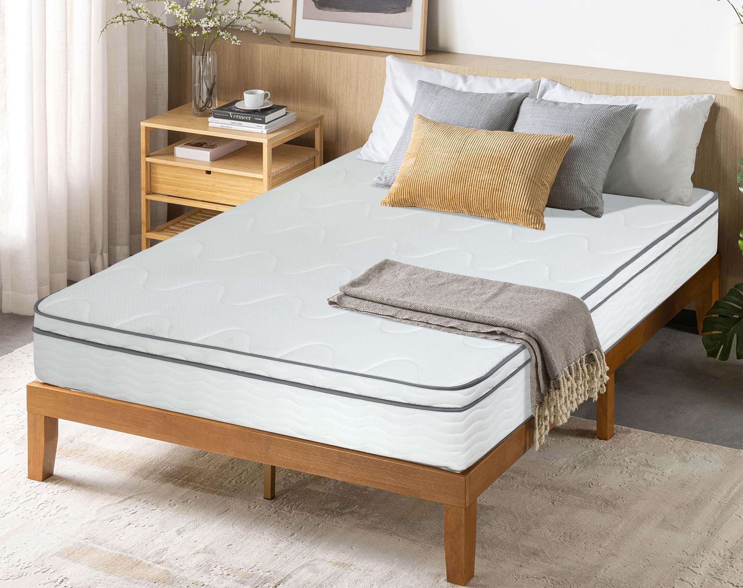 - Individually Wrapped Spring MattressThis inner spring mattress features an elastic coil core to properly support your body. Compared with traditional mattresses, spring mattresses have a longer service life and are less likely to be damaged. Pocket spring and comfort cotton combine to give you relaxing comfort and a cool restful sleeping environment.