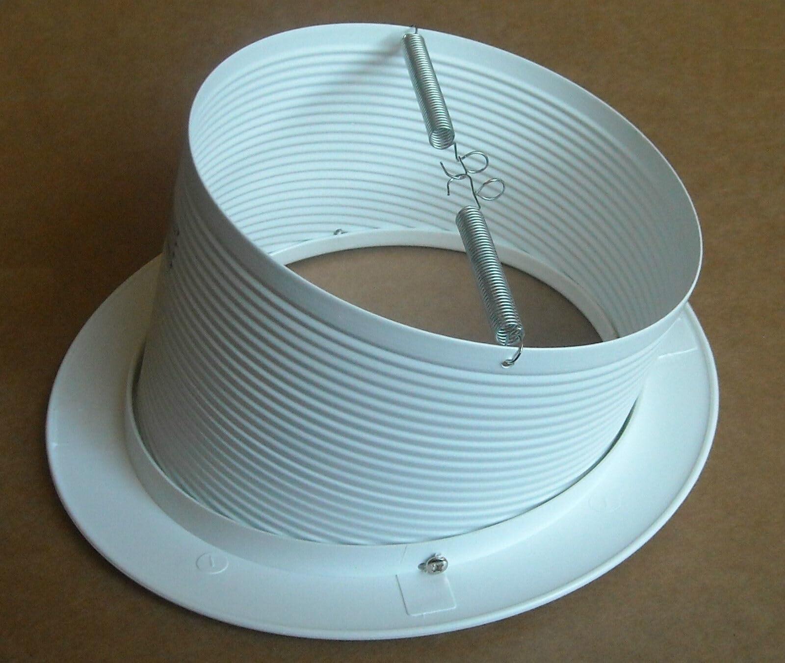 STEP METAL BAFFLE TRIM FOR 6 INCH SLOPE CEILING LIGHT CAN NEW IN THE BOX FOR R30, R40, PAR30, PAR38 AND SAME SIZE COMPACT FLUORESCENT AND LED BULBS. 150W MAX OUTER DIAMETER OF RING : 7-5/8" ~ 7-7/8"