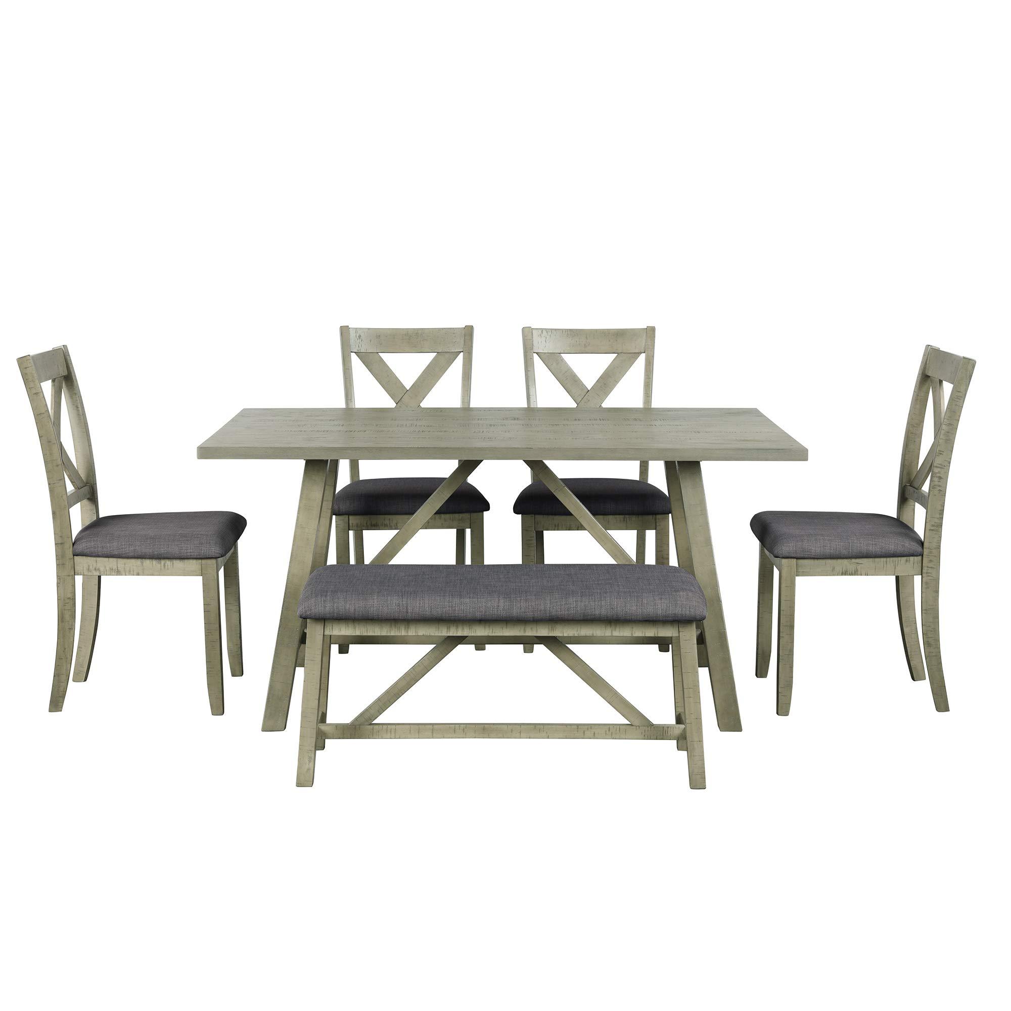 - FUNCTIONALITYThe spacious rectangular dining table, 4 wood chairs and one long bench provide all the essentials to create the perfect dining experience for either friends or family, with the freedom and flexibility to arrange your space the way you want it.
