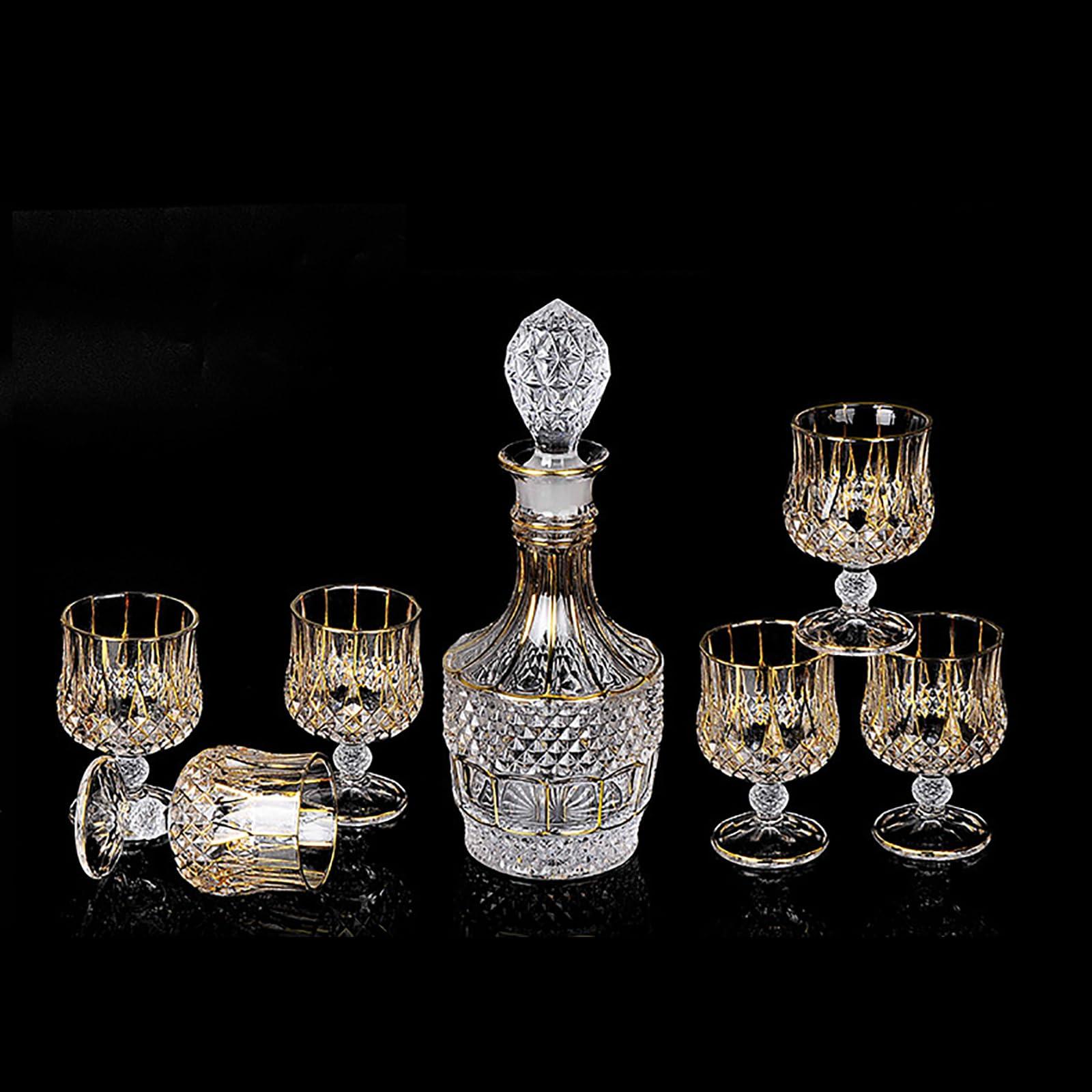 - Lead free crystal glass material The whiskey decanter sets are both made of lead-free crystal glass, with transparent glass walls and a strong sense of light. After pouring whiskey, the texture on the glass becomes clearer and more visible. Thickened glass, thick and durable, providing a more comfortable grip. A large capacity whisky glass for a more enjoyable drinking experience. Bourbon whisky, Scottish whisky, and whisky can all be paired with it.