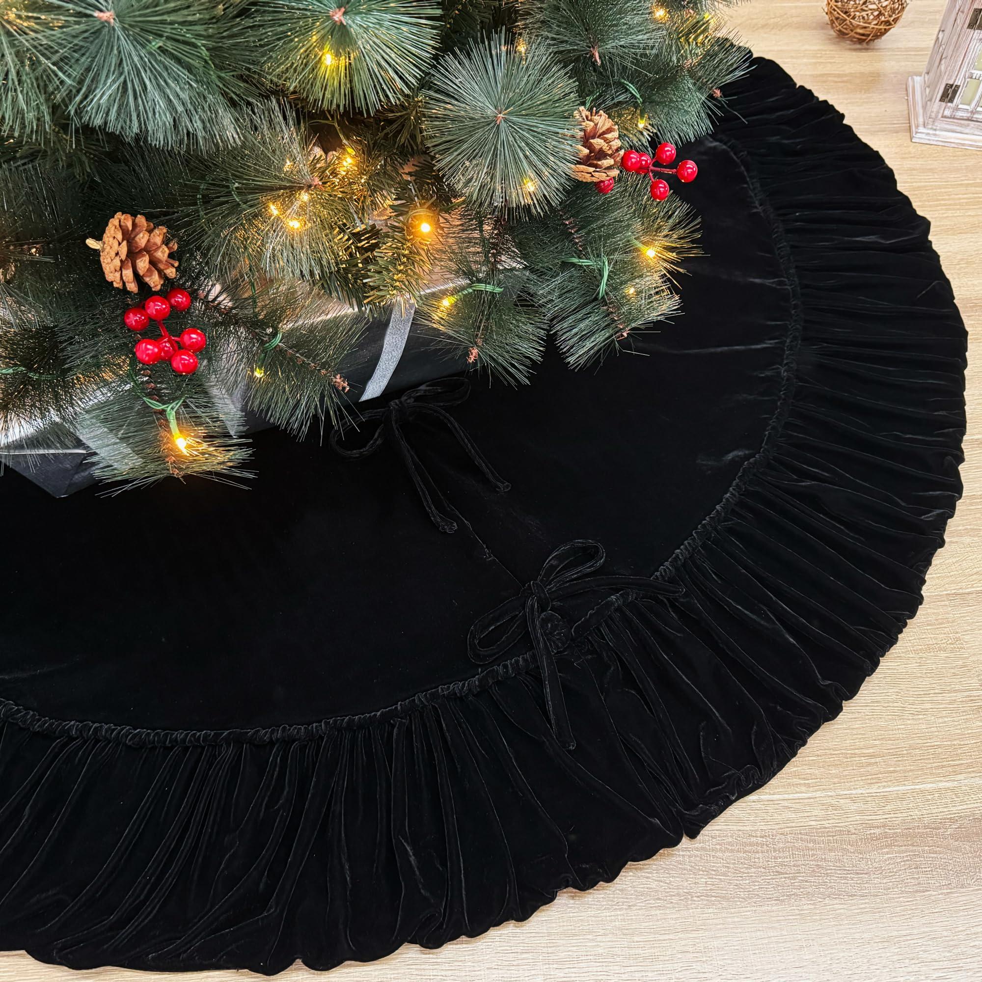 - Exquisite Craftsmanship: Immerse your holiday celebrations in pure luxury with our plush Velvet Christmas Tree Skirt. Adorned with a wide ruffled border expertly joined via self-cord detail, the velvety main body radiates a rich, lustrous sheen, creating an exquisite centerpiece for your holiday decor. Each Starry Dynamo tree skirt is a labor of love, a testament to the countless hours of dedicated craftsmanship that infuse every thread.