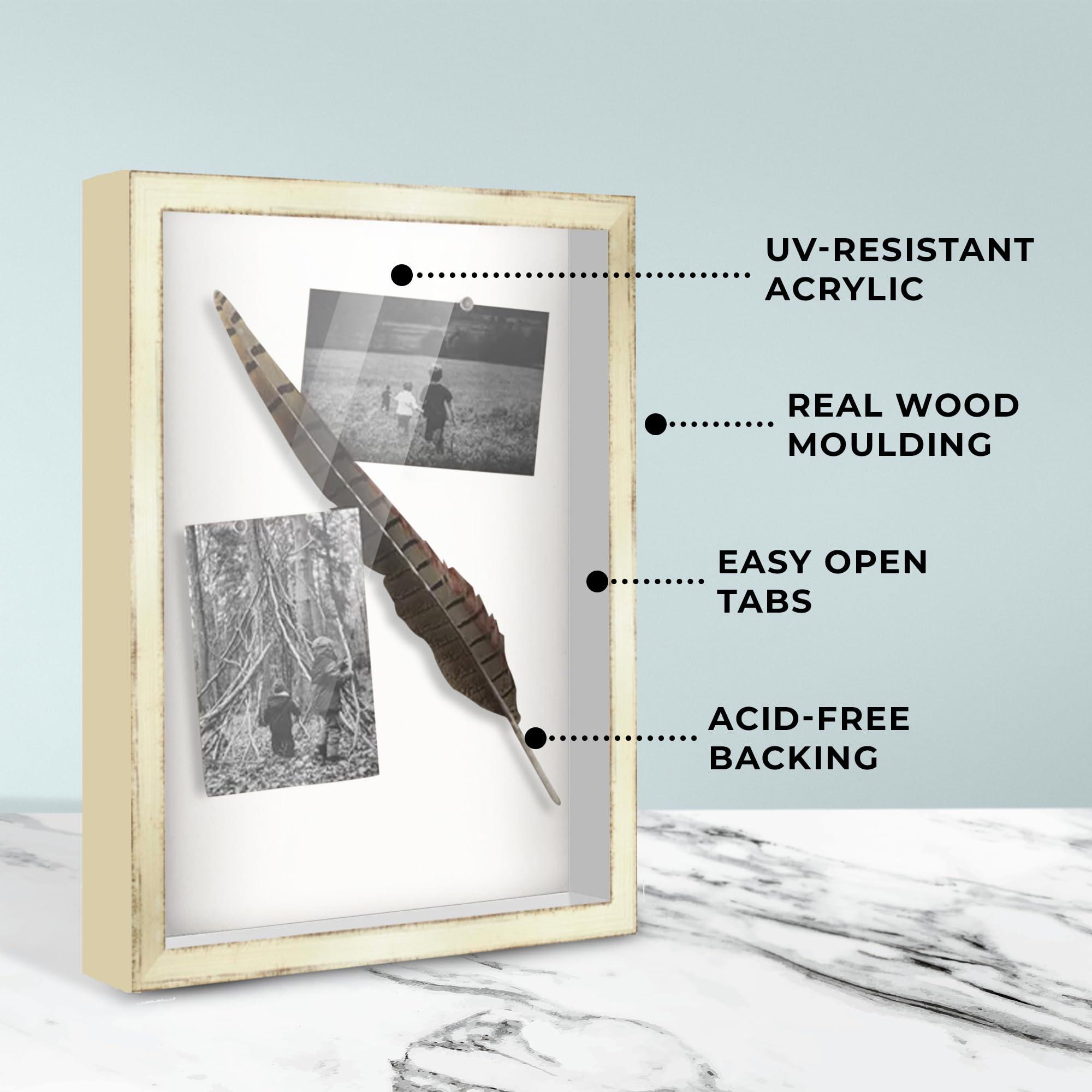 - Handcrafted White Wood Shadow Box for Memorabilia, Treasured Trinkets, and More Up To 1.125 Inches Deep