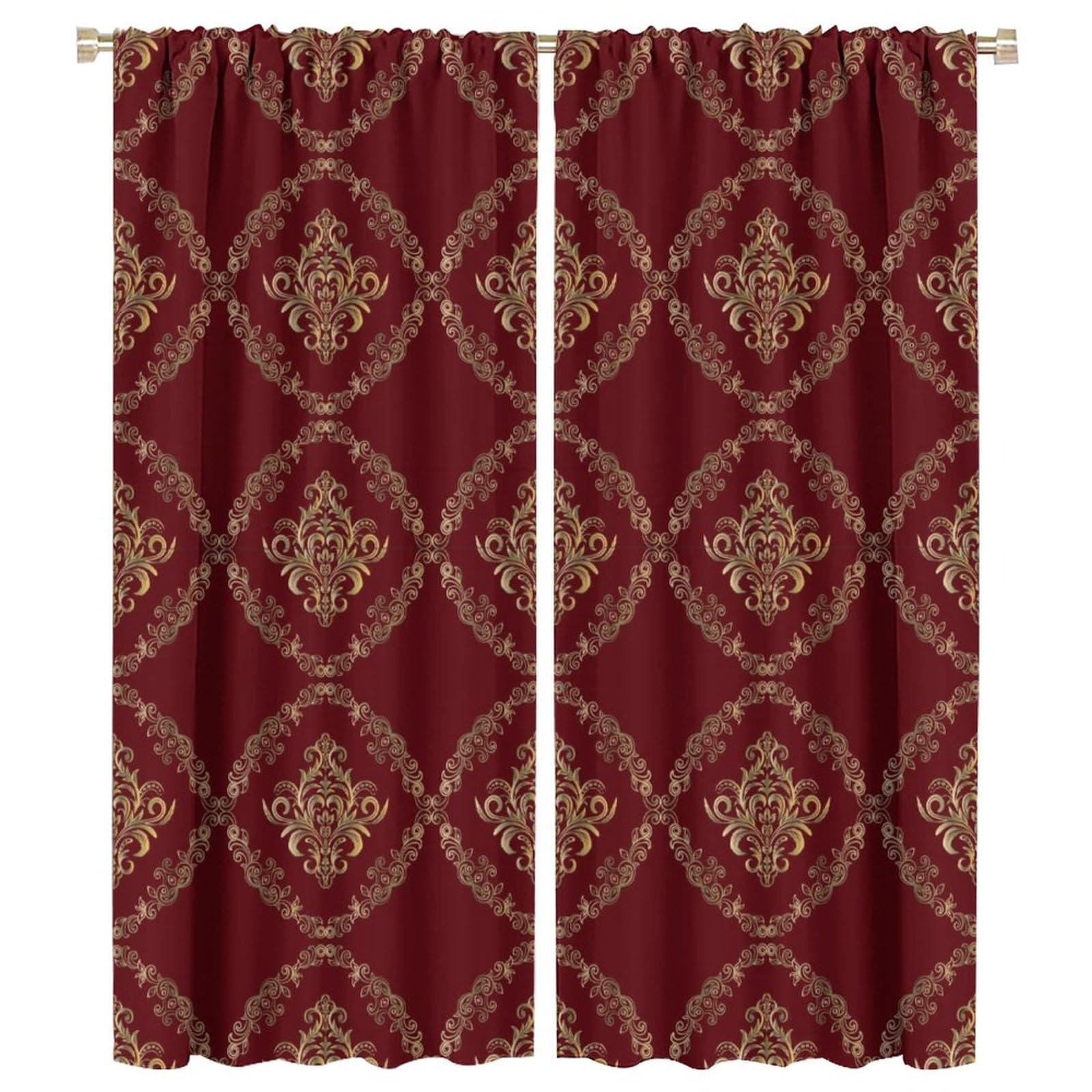 JretailAx Abstract Baroque Luxury Damask Rod Pocket Blackout CurtainsThis Modern Red Gold Damask Medallion Gothic Floral Curtains are suitable for Living room,bedroom,kids room,kitchen.Packaging & Size: Includes 2 panels,each panel:45" length 21" width (114cm 54cm).Total size: 45"L 42" W (114cm 107cm), Includes 2 panels,each panel:54" length 21" width (137cm 54cm).Total size: 54"L 42" W (137cm 107cm), Includes 2 panels,each panel:63" length 21" width (160cm 54cm).Total size: 63"L 42" W (160cm 107cm), Includes 2 panels,each panel:63" length 27.5" width (160cm 70cm).Total size: 63"L 55" W (160cm 140cm), Includes 2 panels,each panel:63" length 31.5" width (160cm 80cm).Total size: 63"L 63" W (160cm 160cm), Includes 2 panels,each panel:72" length 31.5" width (183cm 80cm).Total size: 72"L 63" W (183cm 160cm), Includes 2 panels,each panel:63" length 36" width (160cm 92cm).Total size: 63"L 72" W (160cm 183cm), Includes 2 panels,each panel:84" length 26" width (214cm 66cm).Total size: 84"L 52" W (214cm 132cm), Includes 2 panels,each panel:63" length 42" width (160cm 107cm).Total size: 63"L 84" W (160cm 214cm), Includes 2 panels,each panel:84" length 42" width (214cm 107cm).Total size: 84"L 84" W (214cm 214cm),Workmanship & Design:Each curtain is machine-made and neatly sewn with no loose threads.Beautiful patterns,clever colour matching and advanced printing and dyeing processes for vibrant,fade-free colours.This Modern Red Gold Damask Medallion Gothic Floral Curtains liven up your indoor or outdoor spaces with a sense of airiness and beauty.Care instructions.Machine wash in cold water or hand wash,do not bleach,iron at low temperature.Customer service.24 Hours customer support.