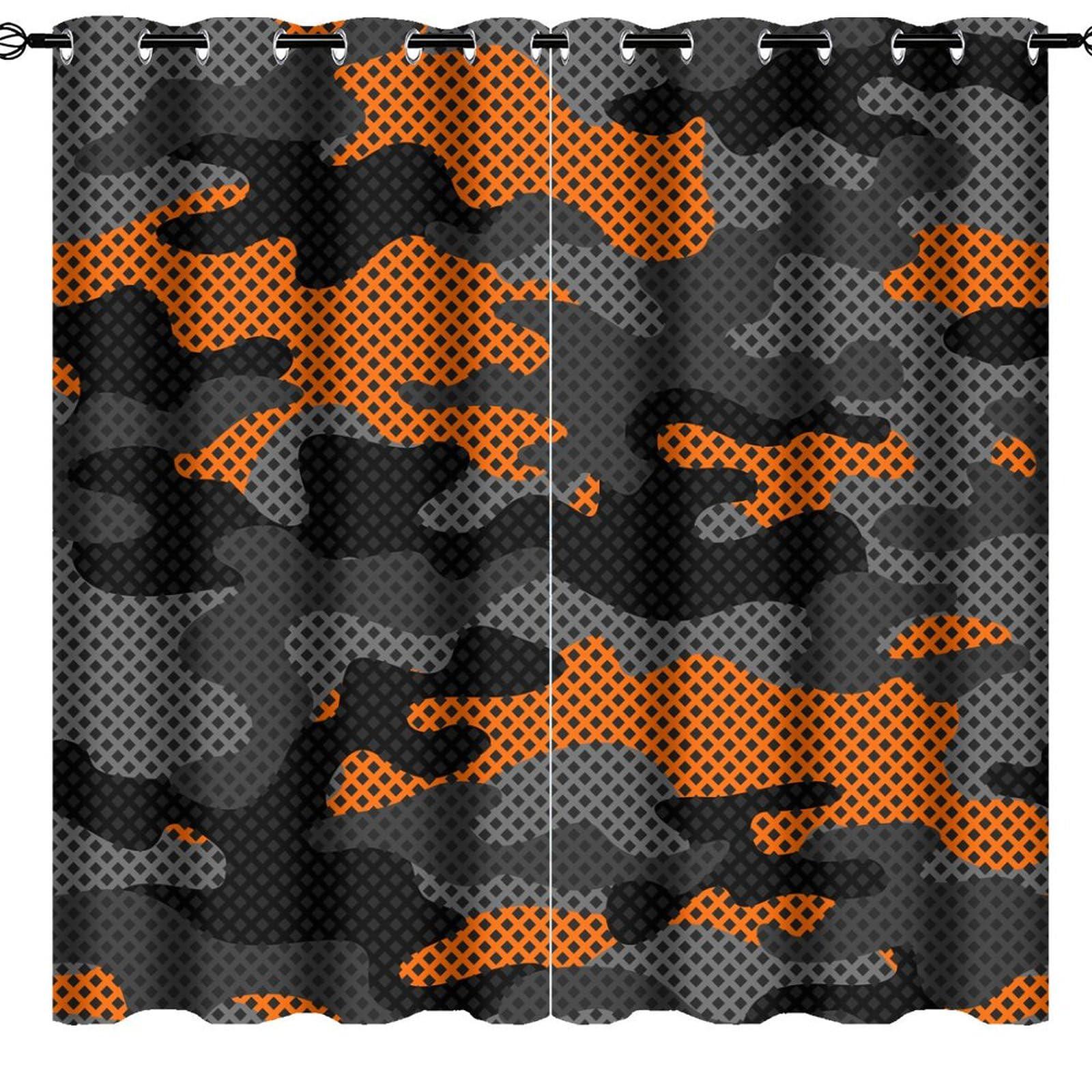 - Grommet Curtains-JretailAx Abstract Orange Black Grey Camo Curtains are Easy to hang, and slide smoothly. Package Includes et of 2 curtains,Each panel measures 42"W x 84"L.