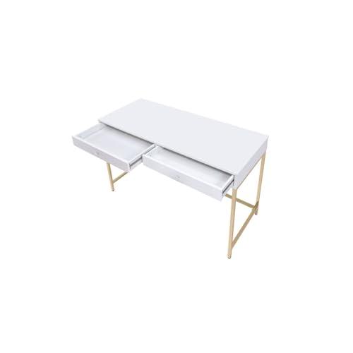 Motivation starts with a great office or study space. Enjoy the contemporary design of this ottey office desk while getting all of your work done in style. Featuring white high gloss finish with a gold metal base, this practical yet fashionable desk offers ample surface room and 2 storage drawers for your office supplies or other accessories. Perfect for any office space in your home, This piece will offer you an excellent space to organize all of your work and study needs.