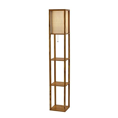 - Accent Floor Lamp: Have it all with style and multi-function. The Wright shelf floor lamp features a walnut wood finished open box frame with two additional display/storage shelves, making it a handy addition to the living/media room, den, office, or bedroom. The square natural textured shade diffuses light from a 150 Watt incandescent or equivalent bulb.