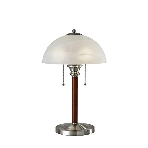 - Adesso Table Lamp Material: home furnishing lamp comes with a dark walnut rubber wood body. Holds a glass dome made of alabaster frosted glass. Base of the lamp is satin steel. Traditional structure of the lamp gives an archaic look to the atmosphere