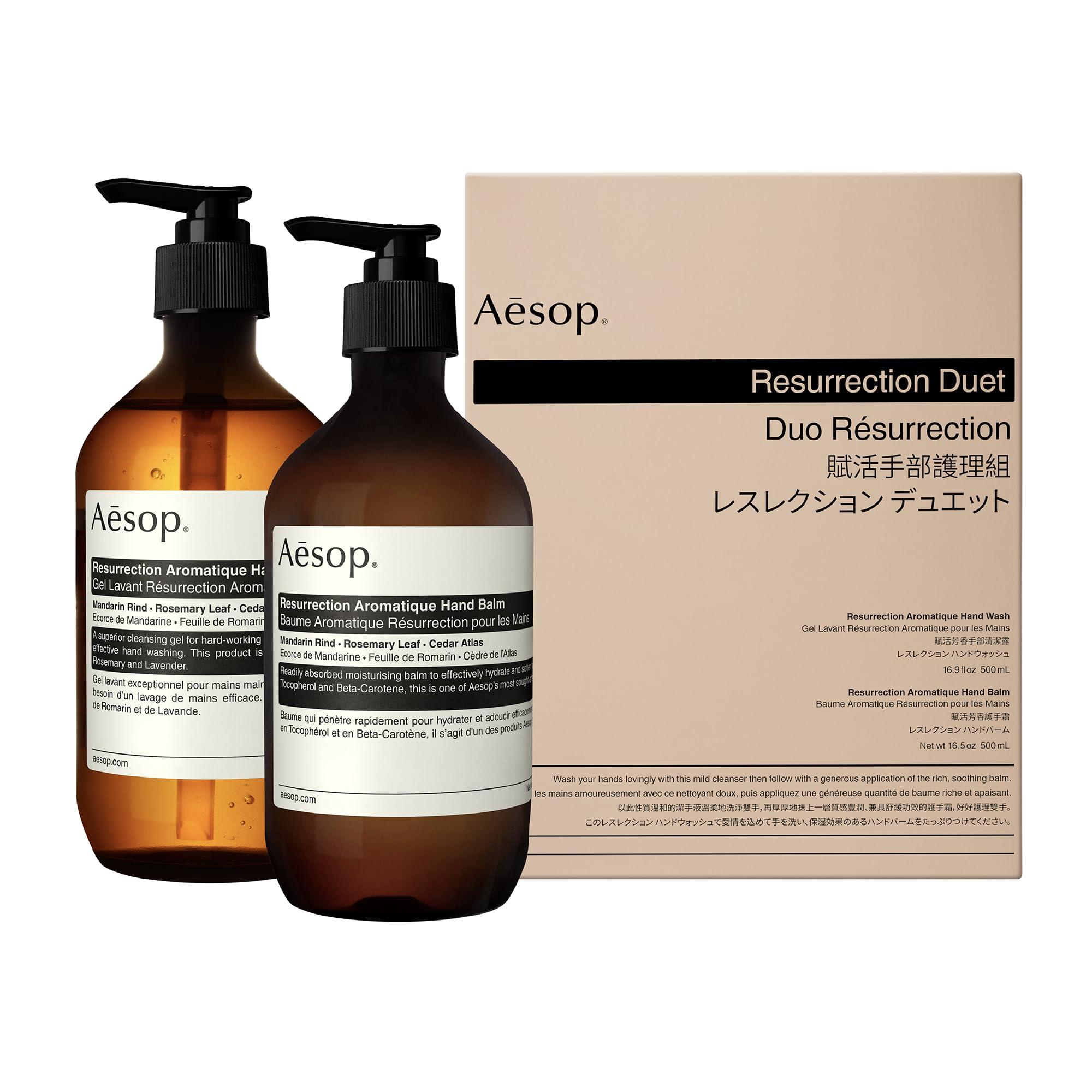 - Contents: Resurrection Aromatique Hand Wash, Resurrection Aromatique Hand Balm.