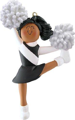 African American Cheerleader Ornament in Black Outfit Uniform Christmas Gift