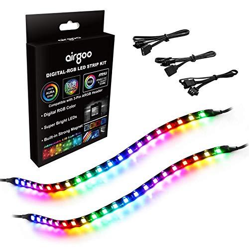 - Addressable RGB SYNC CONTROL: Airgoo Addressable RGB LED strips are designed for Motherboard with 3-pin Digital RGB led strip header (+5V,DATA,N/A,GND or VDD,DATA,GND), Compatible with Asus Aura Sync, Gigabyte RGB Fusion, MSI Mystic Light Sync, ASROCK Polychrome Sync and SignalRGB software.