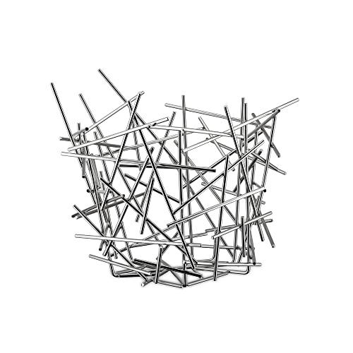 An eye-catching centerpiece empty or filled, this basket from Alessi turns chaos into its own container. Designed by Fratelli Campana in 2004, the basket is crafted from offcuts of 18/10 stainless steel and hand welded. Measuring 14 inches in diameter and 12 inches high, the basket is amply sized for containing rolly pieces of citrus that can be hard to stack in shallower containers. It's also great for napkins or bread at a social gathering. A smaller, matching Blow Up Basket is available separately. This basket, a beautiful piece of folk art, should be hand washed for best care. It makes a great gift for newlyweds, new homeowners, or anyone looking for a fresh breath of change in the home. It's easy to coordinate the Blow Up baskets with other household pieces from Alessi. Peruse the full stock to find like-minded, whimsical pieces.