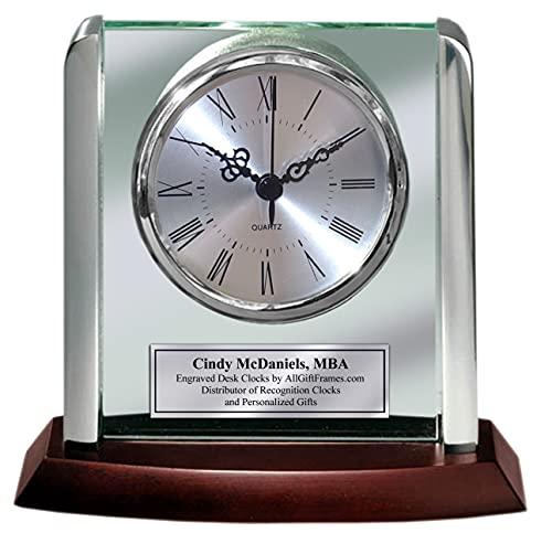 Browse our engraved marble clock website for your unique personalized gift for weddings, anniversaries and birthdays. Source for Marble Clock, Engrave Personalized Clocks and Corporate Logo Engrave Clocks by Framing Achievement, Inc. Offering desk marble clocks at cheap prices. Rating high on style and elegance, Framing Achievement's corporate logo desk clocks and personalized glass clocks appreciation gifts are the first choice in premium recognition service gifts. We are a distributor of Clock Awards, Marble Trophies and Employee Recognition Gifts. Find engraved clocks and personalized wood clocks with thermometer at our Orange County Los Angeles California Recognition Gift. Personalized clocks, corporate awards, employee recognition gifts, glass crystals, trophy cups and bowls. Our exquisite products of Engraved Clocks and personalized executive gift clocks can be given as a retirement gift or employee service award. The engrave desk clock can also be given as an anniversary clock. marble desk clock supplier is located in Orange County California.5"H x 5 1/2"W - A deluxe quartz movement clock with a waterfall bezel is suspended in acrylic and held upright with elegant platinum silver post mounted on cherry wood base