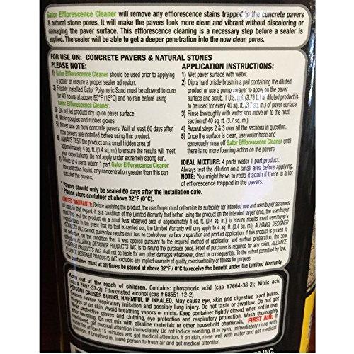 Removes efflorescence from the surface of concrete pavers and natural stones No hydrochloric acid in product Cleans approx 200 Sq ft Washes off with water