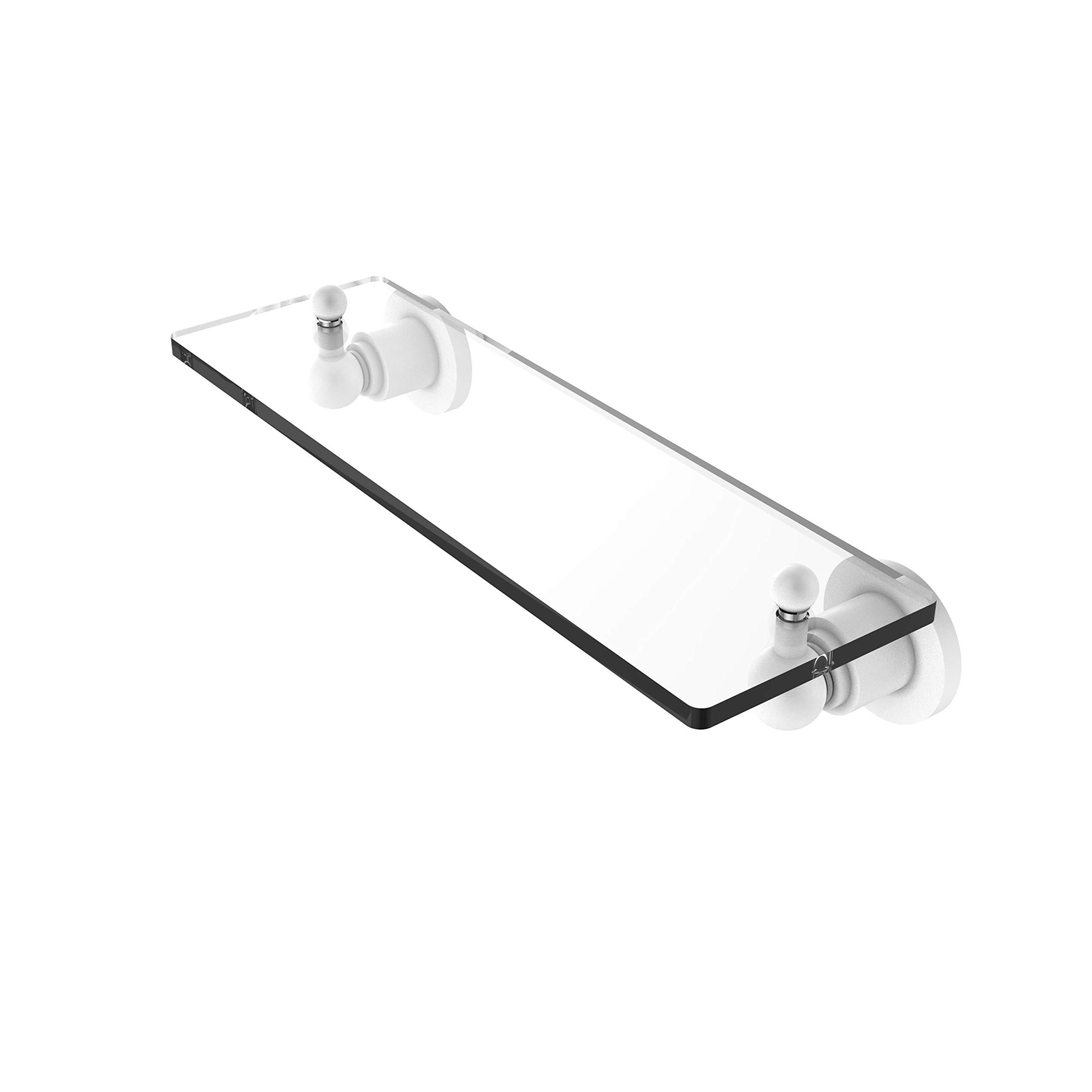 Add space and organization to your bathroom with this simple contemporary style glass shelf Featuring tempered beveled-edged glass and solid brass hardware this shelf is crafted for durability strength and style One of the many coordinating accessories in the Allied Brass Astor Place Collection this subtle glass shelf is the perfect complement to your bathroom decor