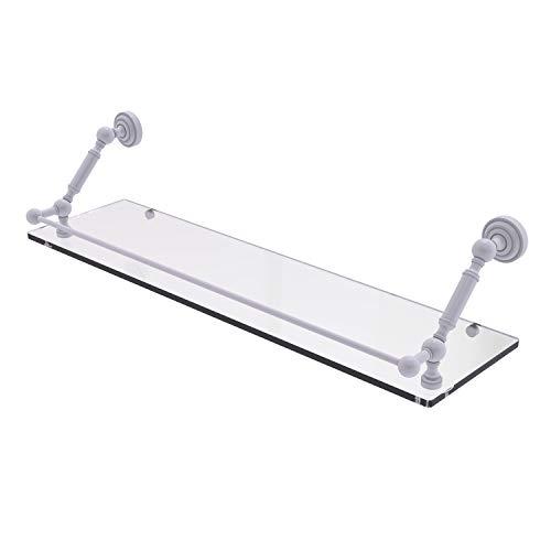 A floating shelf delivers a unique look to any bathroom or powder room. Unlike other shelves, the surface of our floating shelf is suspended below the arms instead of propped up by the brackets. This makes the shelf look like its floating in mid-air. The gallery rail on this shelf will keep your items and secure and in place. Our floating glass shelf features solid brass arms that reach down to the glass surface. Shelf also uses solid brass supports under the back edge of the glass for additional strength and support.