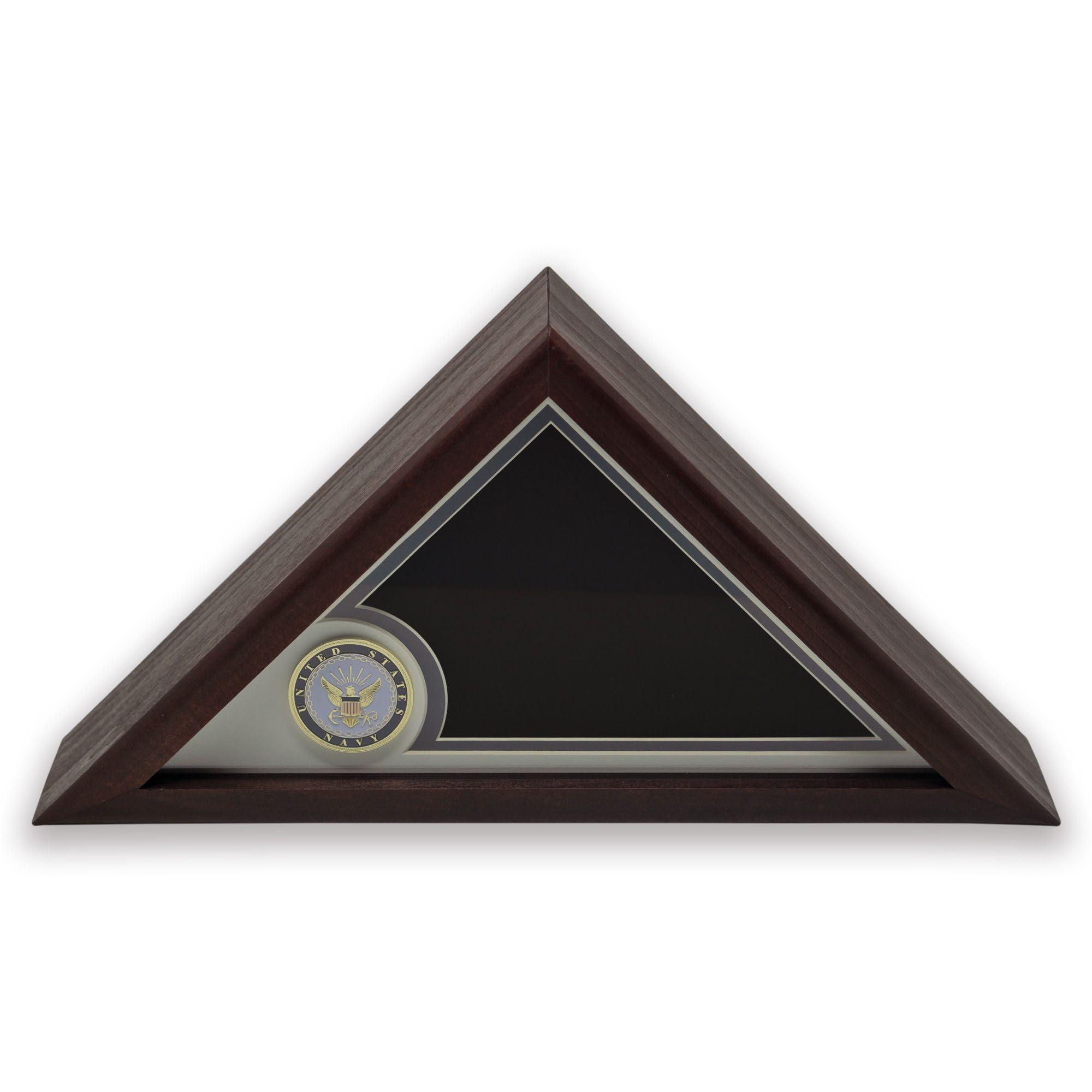 Celebrate the sacrifice and service of our brave American heroes with our US Navy Flag Display Case for 3 x 5 American Flag. Made with pride in Kansas City, Missouri by the largest supplier of flags to the Veterans Administration and agencies of the federal government, this display case is the perfect way to showcase your patriotism and honor the memory of those who have served. Crafted from rich mahogany-colored hardwood and thick glass, this US Flag Display Case is designed to protect and display your 3 x 5 US Flag. The easy open back and solid glass pane make it effortless to insert or remove the flag, while the outside dimensions of 18 wide x 9 high x 3.75 deep provide ample space to display your cherished flag. Some features of this Flag Display Case for 3 x 5 America Flag include: Glass panel: Protects your flag from dust and damage while showcasing. Easy open back: Allows for easy insertion and removal of your flag. Sized for a 3 x 5 US Flag: Perfect for displaying the most common size of American flags. Outside dimensions: 18 wide 9 high x 3.75 deep: Provides ample space to display your flag. Weighs approximately 3 lbs. without a US flag: Lightweight design makes it easy to handle and display. With the option to order an official 100% cotton, embroidered 3 x 5 US flag, this display case can hold even more significance for those honoring loved ones who have served our country. The combination of the official flag and this beautiful display case make it a truly special way to show your support for our veterans and active military. Invest in this US Navy Flag Display Case for 3 x 5 American Flag to proudly display your US flag and honor those who have made the ultimate sacrifice for our country.