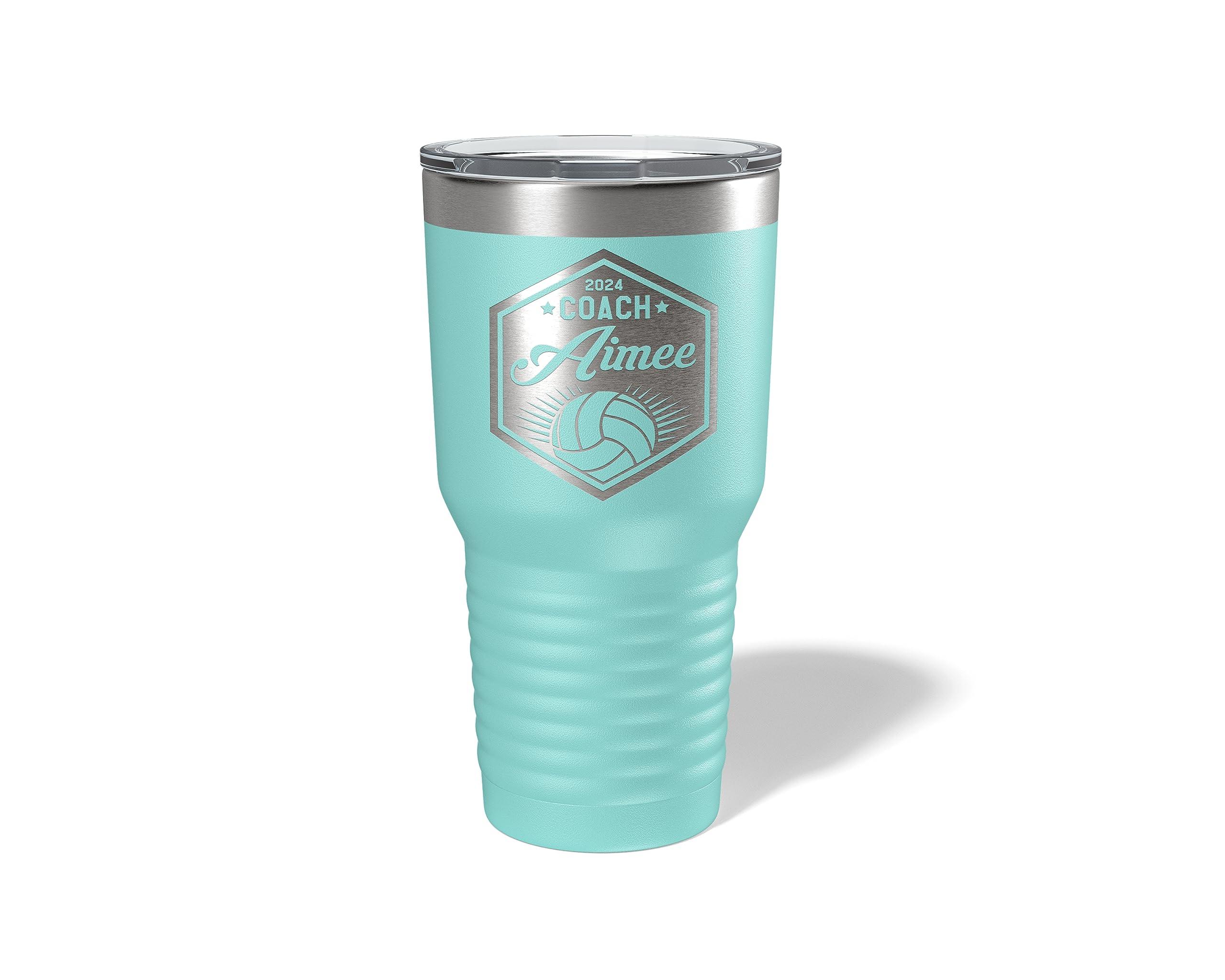 - PERSONALIZED FOR YOUR COACH - Each tumbler is laser engraved with your coach's name. Our stainless steel tumblers are double-wall vacuum insulated, keeping drinks hot or cold for hours. Perfect for sipping on the sidelines or in the office.