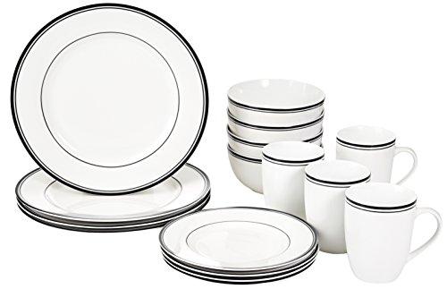Amazon Basics 16-Piece Cafe Stripe Kitchen Dinnerware Set, Plates, Bowls, Mugs, Service for 4, Black