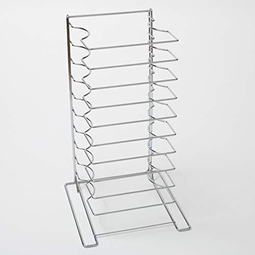 - Durable 10-shelf pizza rack made of heavy chrome-plated steel rod