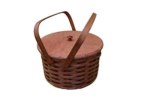 Amish Handcrafted Round Double Pie Basket with Two Oak Swivel Handles, Divider Tray and Lid - Authentic and Collectible Basket Handmade in USA - Natural Basket with Accent Colors Which May Vary (Blue, Red, Green, Burgundy, Purple, Black, Brown, or Natural). Measures approx. 12" x 7". An ingenious design used to carry up to two pies at once to take to the church socials, bake sale, pot-lucks, and family get-togethers. It's not too late to be prepared! Collectible handmade primitive decor. This beautiful double pie carrier basket has the improved feature of an extra handle to balance your delicious pies. With all of the hard work and effort put into baking for your loved ones, make sure your pies arrive safely! Our authentic AMISH WARES double pie is a top seller and has been featured in The Los Angeles Times News Paper. Possibility of Fresh Stain Odor, Will Need to Be Aired Out Upon Product Arrival