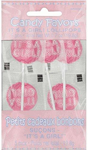 amscan Delightful It\'s a Girl 42561 oz Lollipops Baby Shower Party Favors, Pink/White