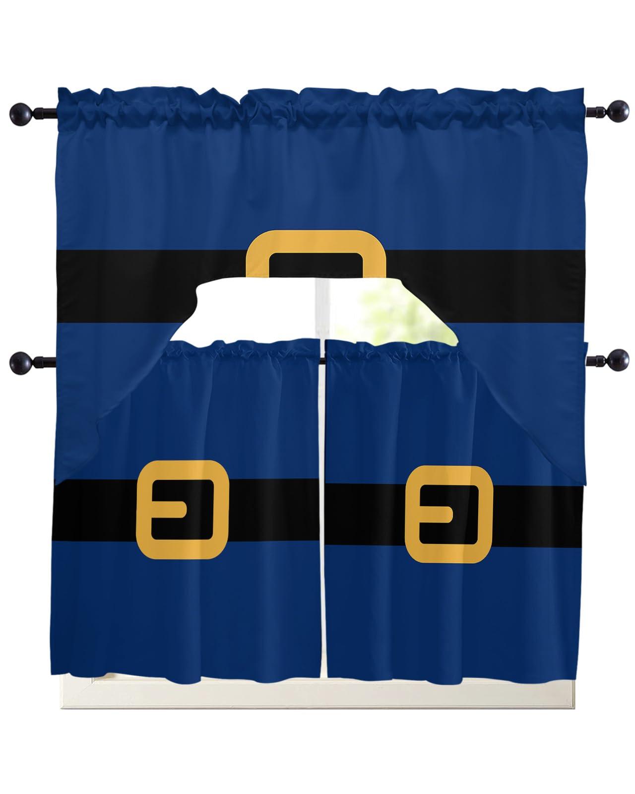 AMZRicher Santa Claus Belt Kitchen Curtains Swag Valance and Tier Curtains Set 36 Inch Length, Merry Christmas Navy Blue Rod Pocket Drape Panels Pair Swag Curtains for Bathroom/Cafe/Window