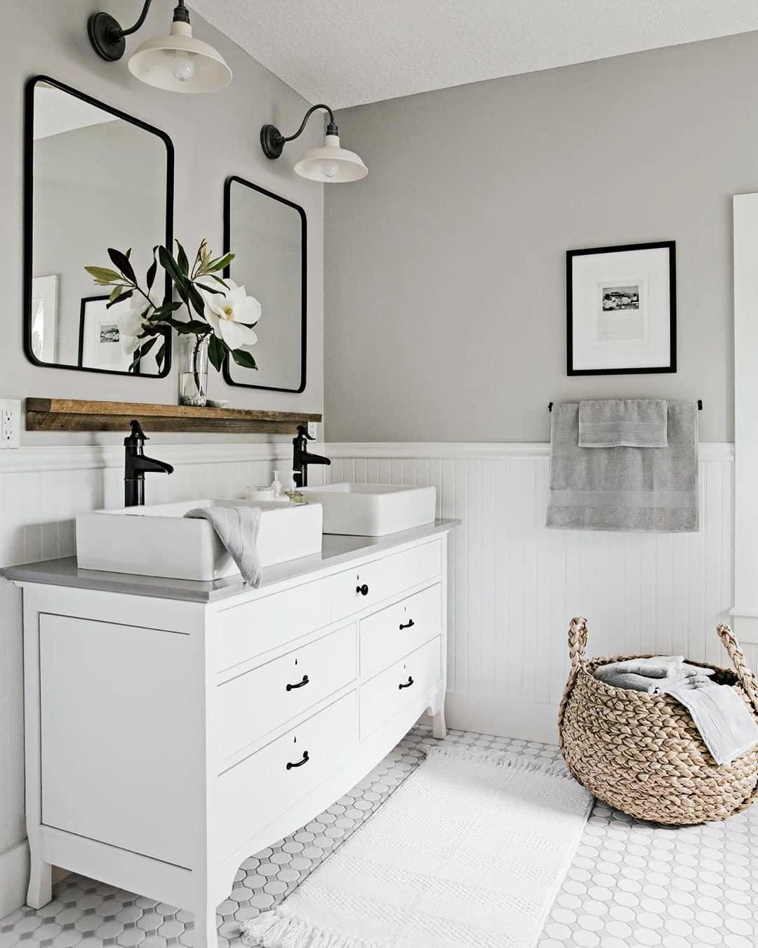 - 20x28 MATTE BLACK WALL MIRROR IDEAL FOR SMALL BATHROOM: This 20x28 inch mirror is the ideal size for small bathroom mirror, vanity mirror, wall mirror. With the unique beauty rounded frame design, it could definitely be the one for your space. The metal frame with modern matte black finish could match any decoration for your space(Modern,Farmhouse or Rustic). Let this rounded rectangle mirror enhance the beauty for your home instantly