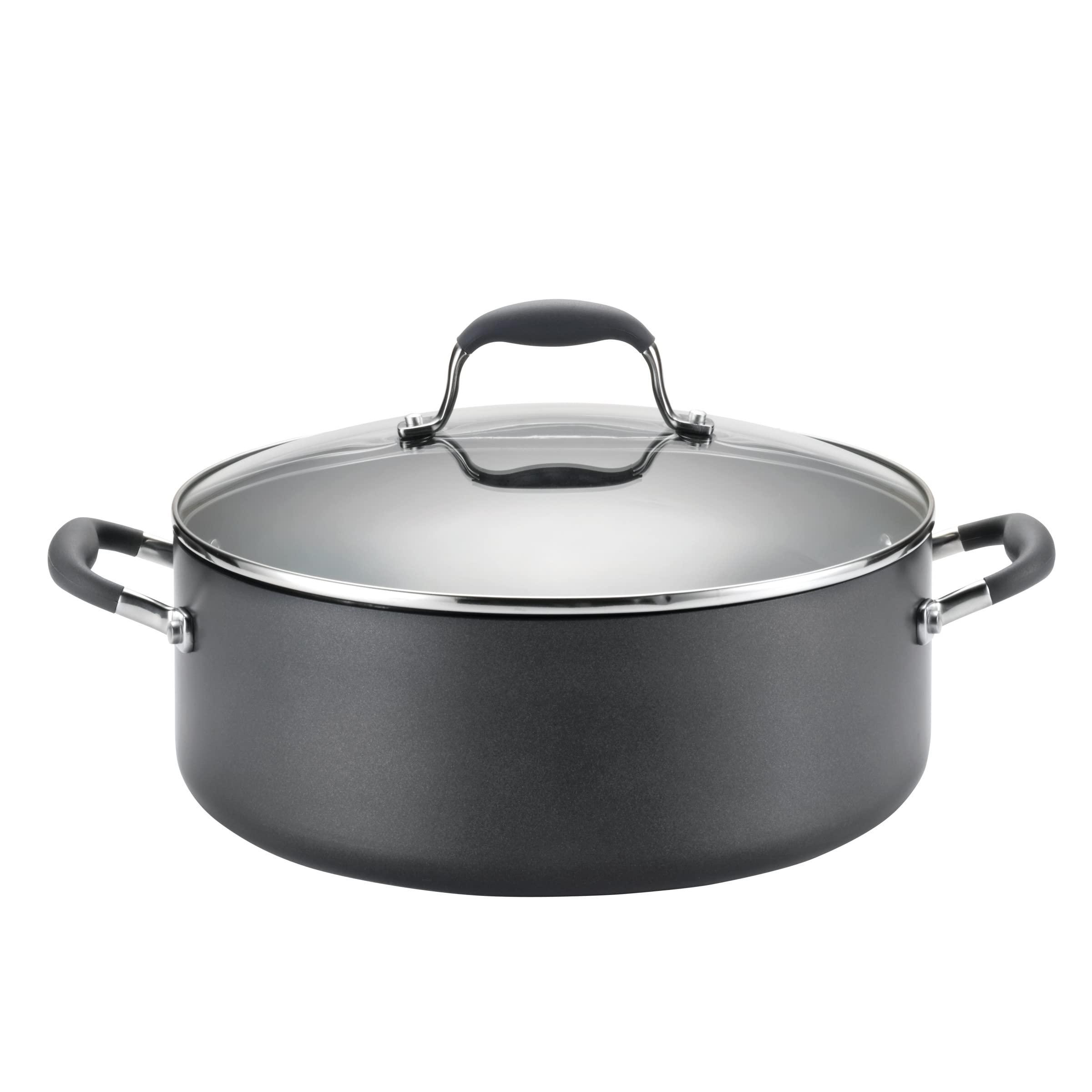 Create a large batch of chili or boil enough fettuccine for a family feast in the Anolon Advanced Hard-Anodized Nonstick 7.5-Quart Wide Stockpot with lid. Extra wide to do the job with ease, the wide stockpots heavy-duty, hard-anodized construction provides efficient, even heat distribution to help reduce hot spots that can burn foods. Restaurant tested by professional chefs, the triple-layer premium-quality nonstick surface inside delivers superior durability to stand up to the rigors of a professional kitchen and is ideal for easy cleanup while being metal utensil safe. Revolutionary Anolon SureGrip handles feature comfortable rubber over durable stainless steel for a confident grip and are dual riveted for added strength. The shatter-resistant glass lid allows easy monitoring of food while it cooks without losing heat or moisture. Oven safe to 400F, this wide stockpot coordinates well with many other pieces in the Anolon Advanced collections. When gourmet quality and capacity are needed on the culinary journey, turn to the Anolon Advanced Hard-Anodized Nonstick 7.5-Quart Wide Stockpot with lid.