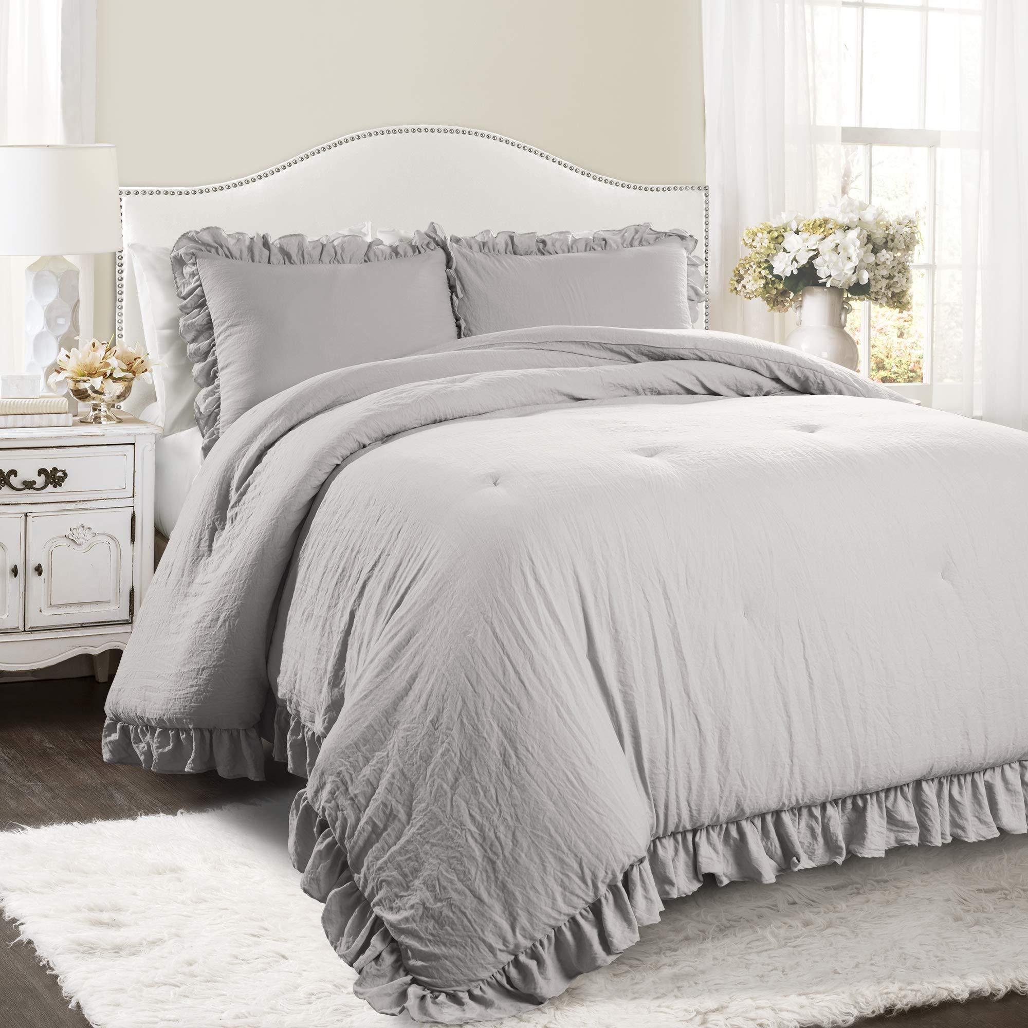APRbedding Shabby Chic Ruffled 3pc Sheet Set 100% Cotton Cottage French Country Style Frilled Bed Sheets (Light Gray,Full XL)