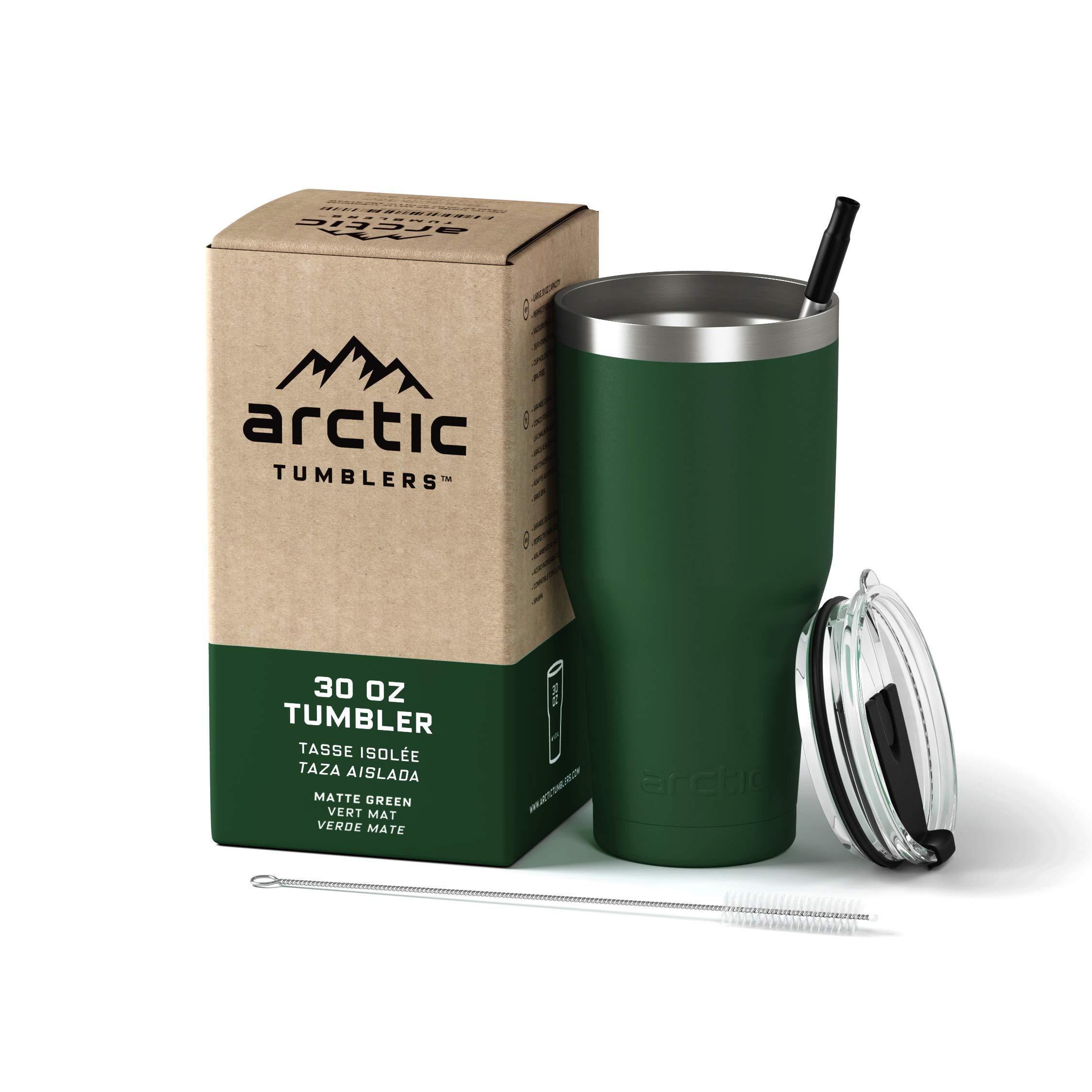 Arctic Tumblers | 30 oz Green Insulated Tumbler with Straw & Cleaner - Retains Temperature up to 24hrs - Non-Spill Splash Proof Lid, Double Wall Vacuum Technology, BPA Free & Built to Last